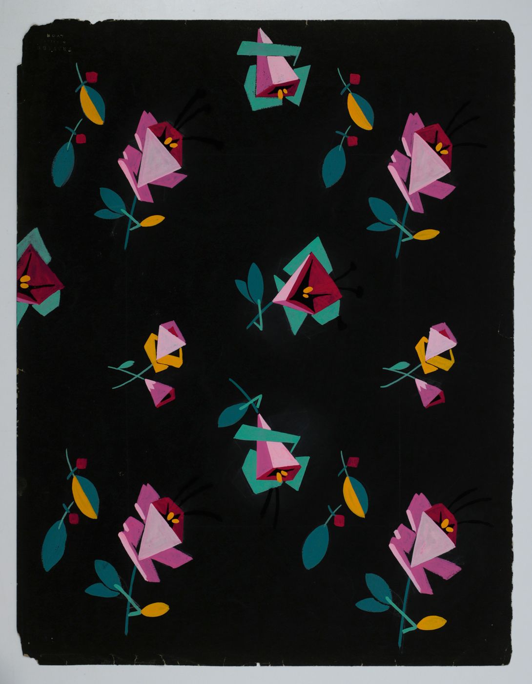 Original Art Deco design for wallpaper and/or textiles. ["Cubist" flowers].
