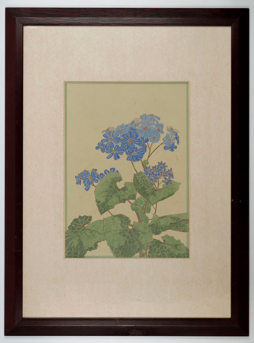 A fine Art Nouveau or "Jugendstil" plate, showing cinéraires, or Cineraria, colourful plants related to sunflowers, drawn and engraved by the French Art Deco painter and entomologist Émile Allain Séguy (1877-1951) (not to be confused with the French dipterologist Eugène Séguy). The complete work consists of two types of plates: illustrations of plants and flowers, and illustrations of their application in decorative art. This work is very rare and even single plates are rarely seen. Some light, even age-toning, otherwise very good. Schneider-Henn, Ornament und Dekoration, 273 and p. 48.