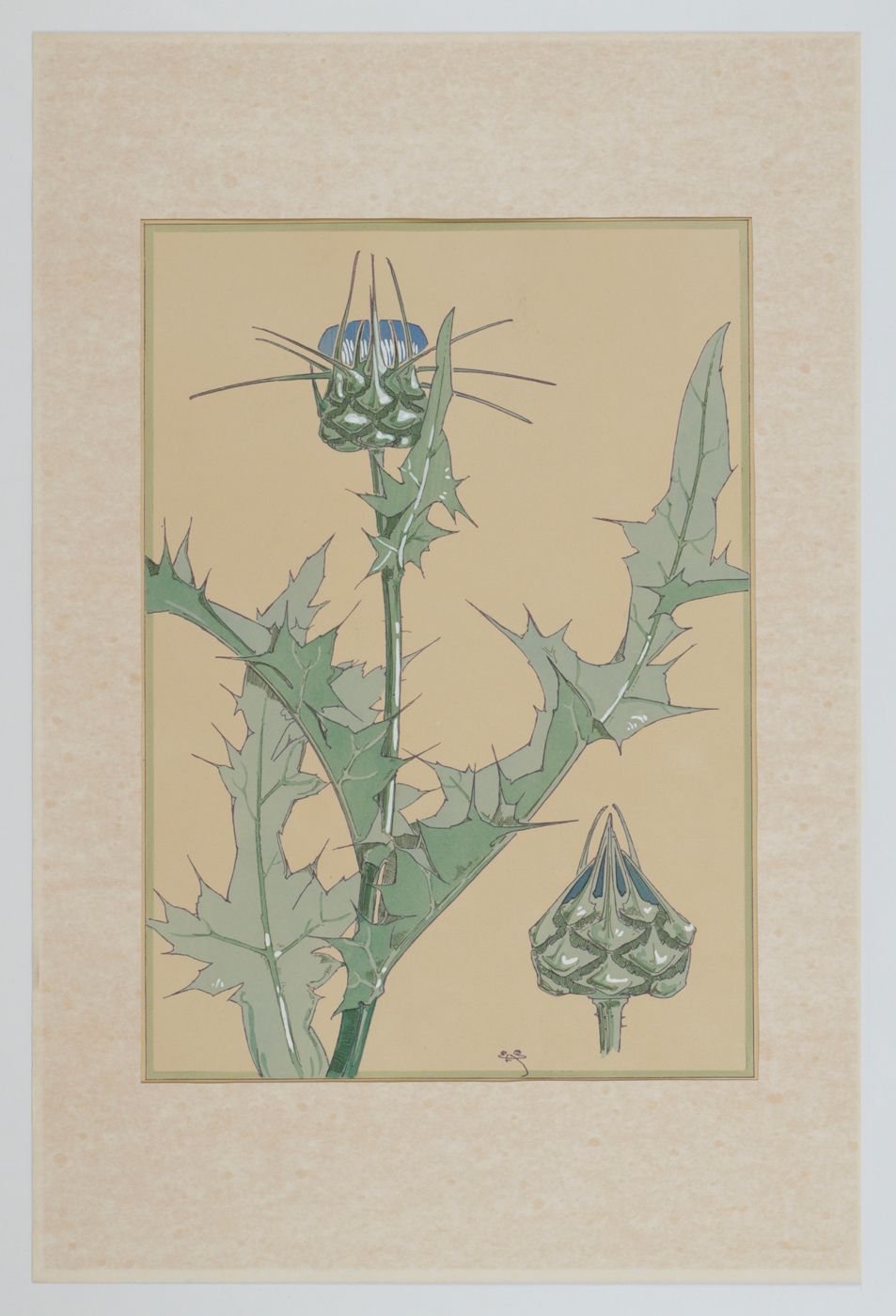 A fine Art Nouveau or "Jugendstil" plate, showing thistles, drawn and engraved by the French Art Deco painter and entomologist Émile Allain Séguy (1877-1951) (not to be confused with the French dipterologist Eugène Séguy). The complete work consists of two types of plates: illustrations of plants and flowers, and illustrations of their application in decorative art. This work is very rare and even single plates are rarely seen. Some light, even age-toning, otherwise very good. Schneider-Henn, Ornament und Dekoration, 273 and p. 48.