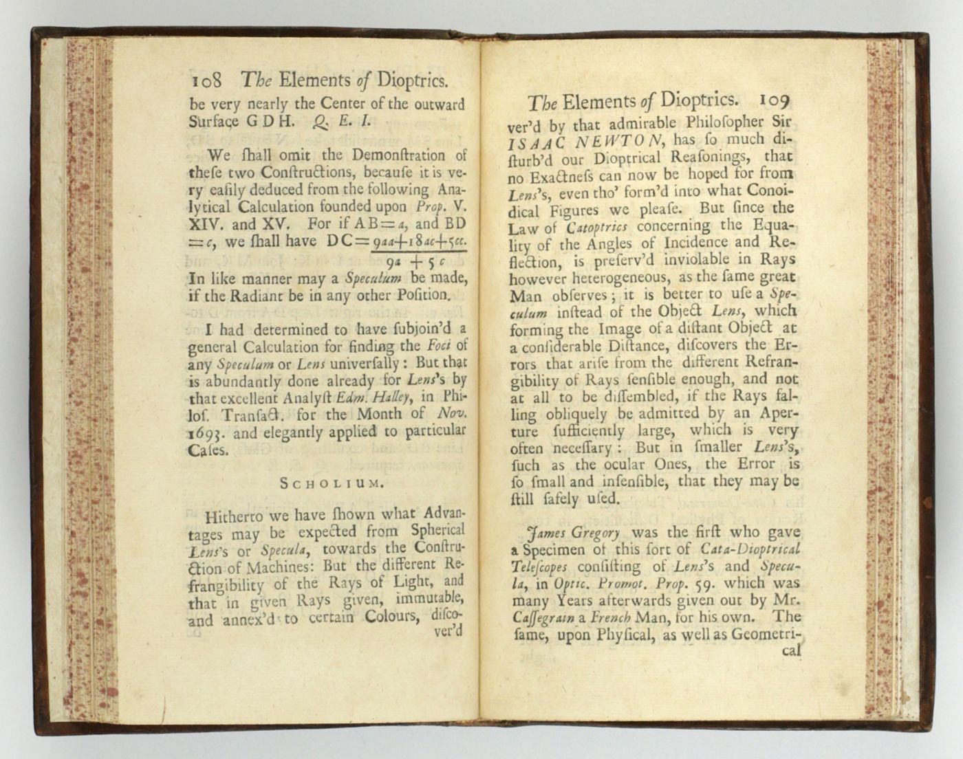 Dr. Gregory's elements of catoptrics and dioptrics. To which is added I. A method for finding the foci of all specula as well as lens's universally. As also for magnifying or lessening a given object by a given speculum or lens in any assign'd proportion, &c. II. A solution to those problems which are left undemonstrated. III. A particular account of microscopes and telescopes, from Mr. Huygens. With an introduction shewing the discoveries made by catoptrics and dioptrics. [First English Edition].