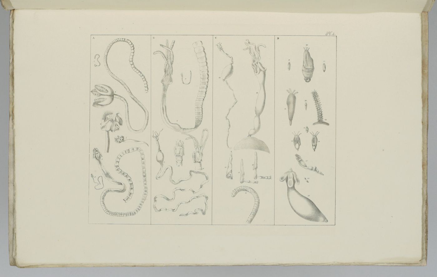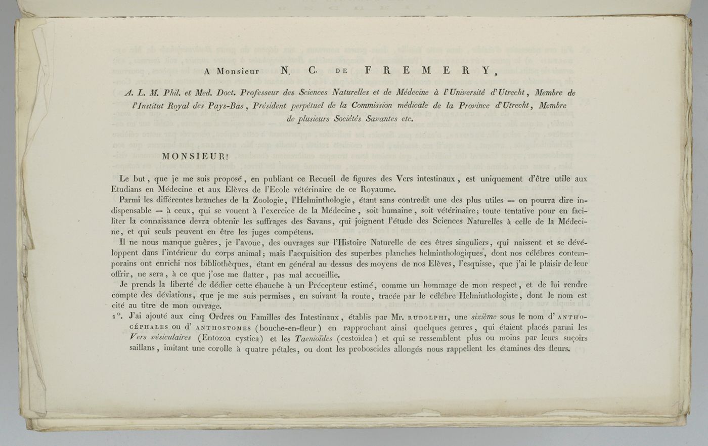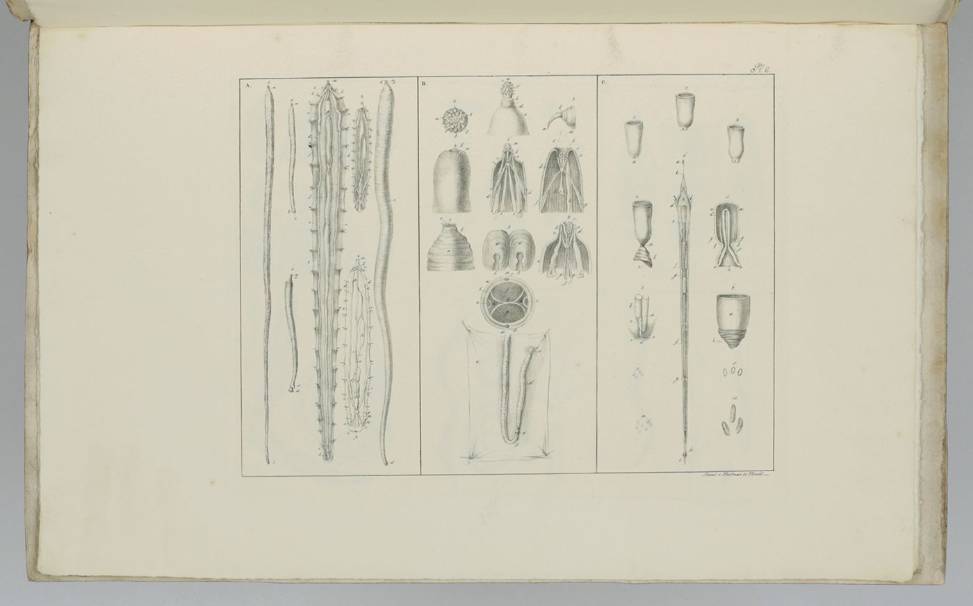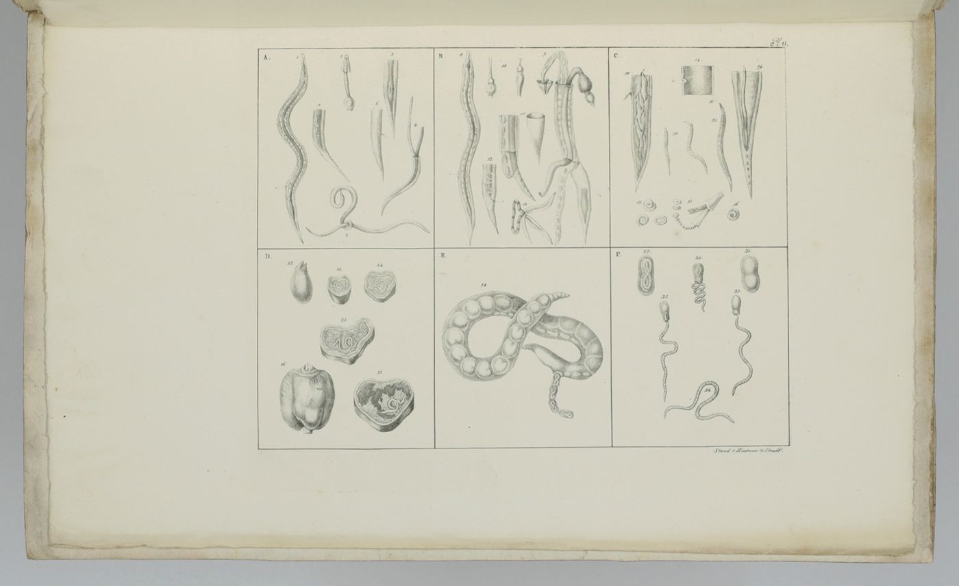 Recueil de figures des vers intestinaux. Ouvrage, présentant une distribution méthodique des ces animaux, les caractères généraux et particuliers de leurs familles et de leurs genres, principalement suivant le système de Mr. le professeur C. A. Rudolphi et la description de quelques espèces les plus remarquables.