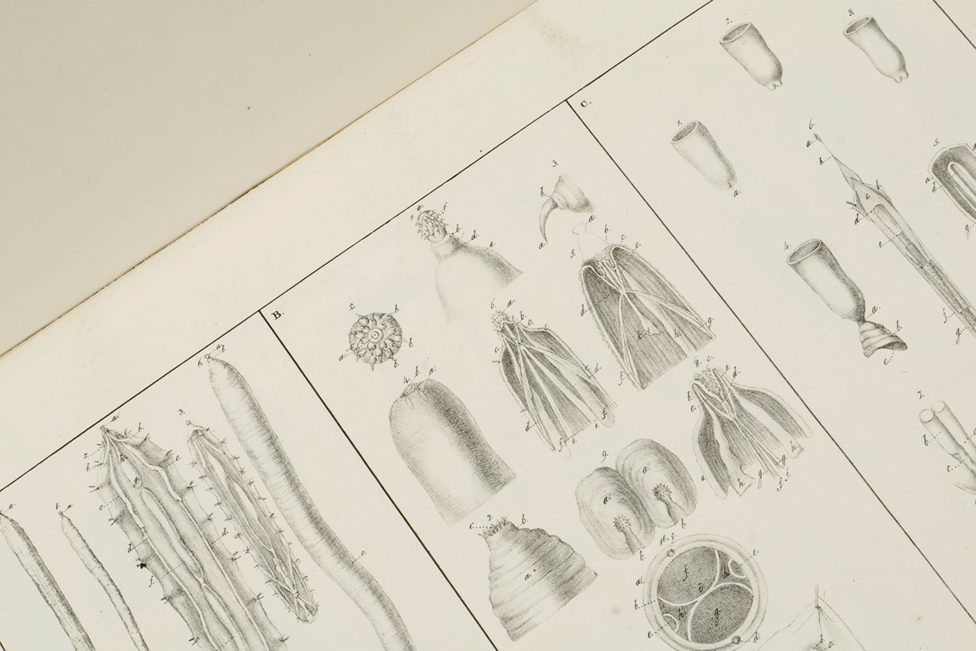 A rare work on mammalian and avian intestinal parasites, with fine, lithographed plates. Written by the Dutch zoologist, parasitologist, veterinary doctor and rector magnificus of Utrecht University from 1833 to 1834, Theodoor Gerard van Lidth de Jeude (1788-1863). Between 1821 and 1826 he was the first director of the National Veterinary School, the first educational institution where veterinary medicine was taught in the Netherlands. In Utrecht he owned a park and museum, with a collection of animal skeletons. This is hist most important contribution to zoology. Copies with just ten plates have been advertised. This copy has 11 plates. Lacks, however, an explanatory leaf to plate 11. Otherwise, a well-preserved copy. Cat. BM(NH) p. 1110; Not in Nissen ZBI.