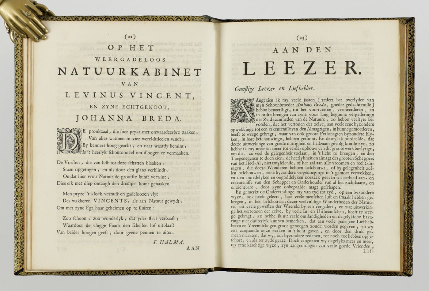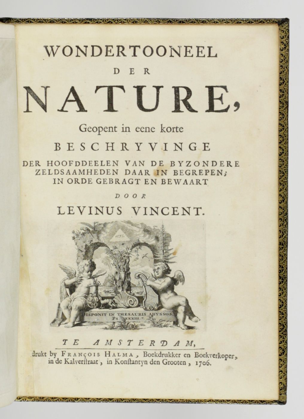 Wondertooneel der Nature, geopent in een korte beschryvinge der hoofddeelen van de byzondere zeldzaamheden daar in begrepen; in orde gebragt en bewaart door Levinus Vincent. [AND] Het tweede deel of vervolg van het wondertooneel der natuur, ofte een korte beschrijvinge zo van bloedelooze, zwemmende, vliegende, kruipende, en viervoetige geklaauwde eijerleggende dieren, als van hoornen, schulpen, koraalen, zee-heesters, metallijke en in steen veranderde dingen, enz. Van de welke een zeer groote meenigte word bevat in de kabinetten van Levinus Vincent.