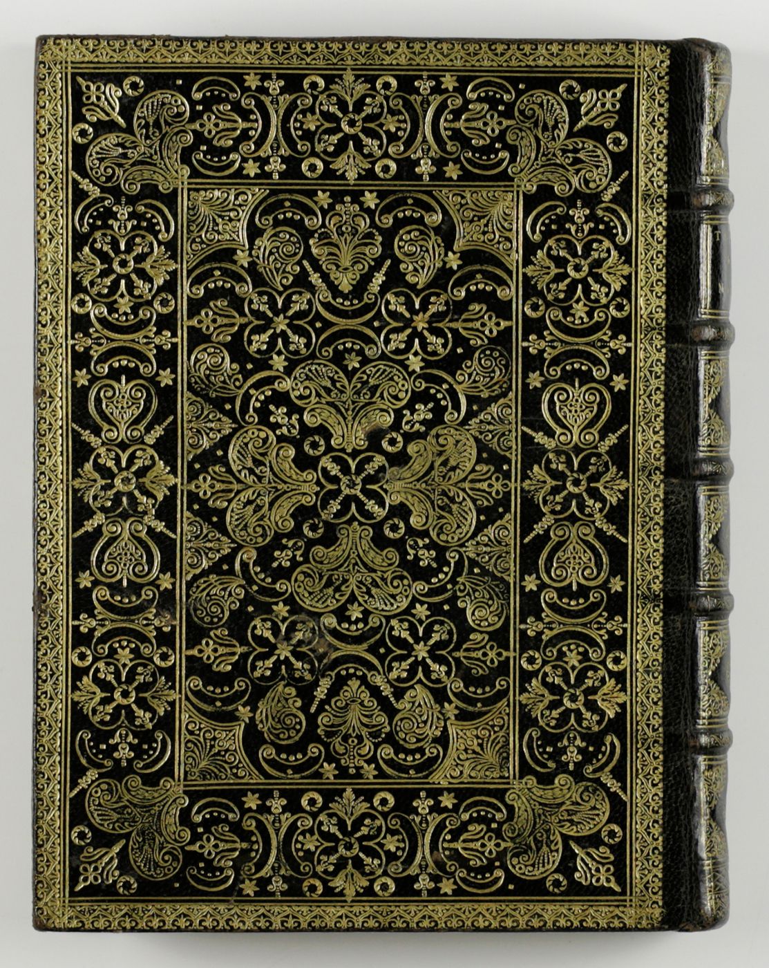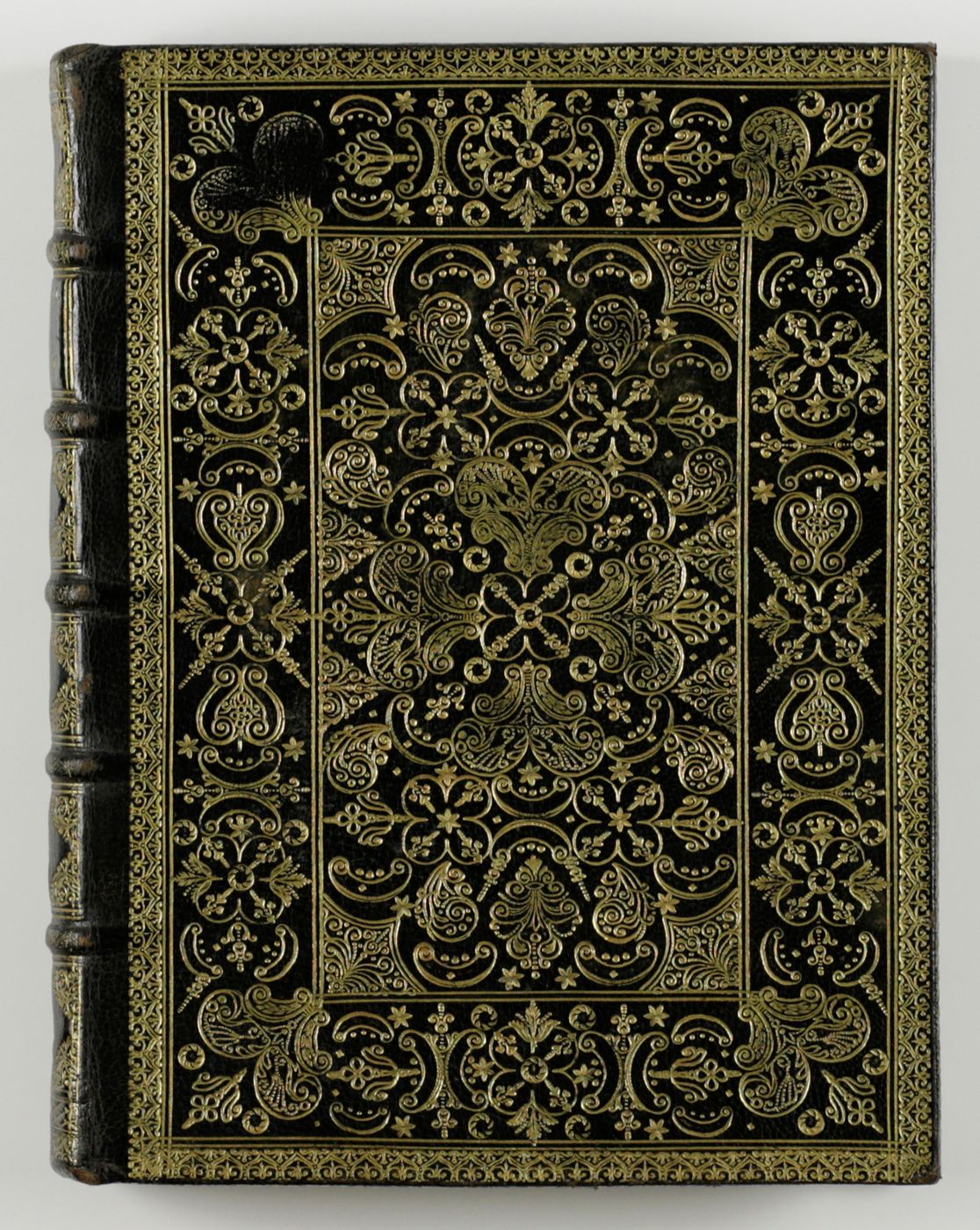 Amsterdam, François Halma [and] the author, 1706-1715. Two parts, bound in one. 4to (23.7 x 17.8 cm). Engraved title, double-pages engraved frontispiece, letterpress title with large copper-engraved allegorical vignette; [5]-30 pp.; second letterpress title with small woodcut vignette; [ii-xvii], [i-ii], [1-8], [i-ii], 9-278 pp.; seven folded, engraved plates. Contemporary full black morocco with extremely rich gilt decorated front and rear boards with floral patterns; spine with five raised gilt-ornamented bands; compartments with rich gilt angular borders, gilt floral vignettes, and gilt title. Gilt edges and inner dentelles. Marbled endpapers. All edges gilt.