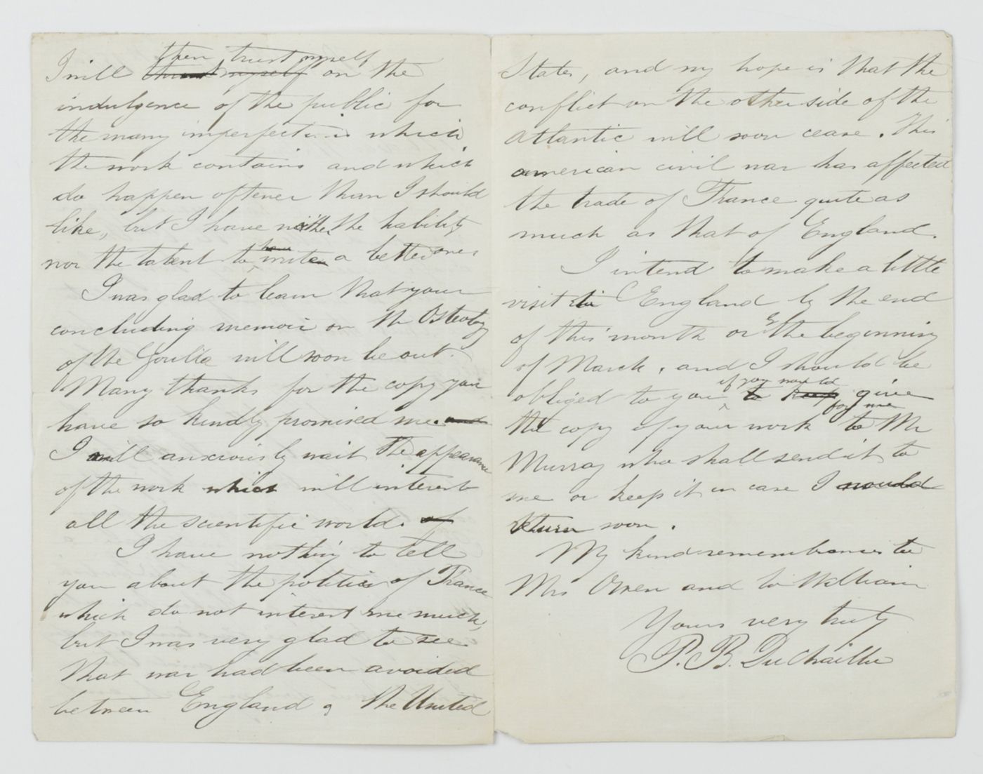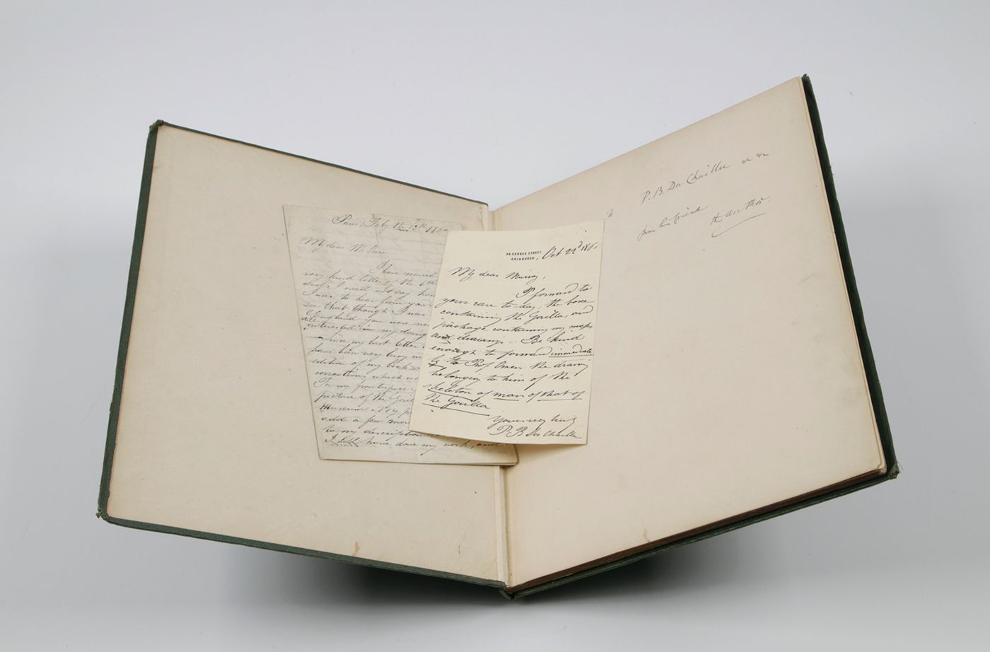 Presentation copy to Du Chaillu, including original letters