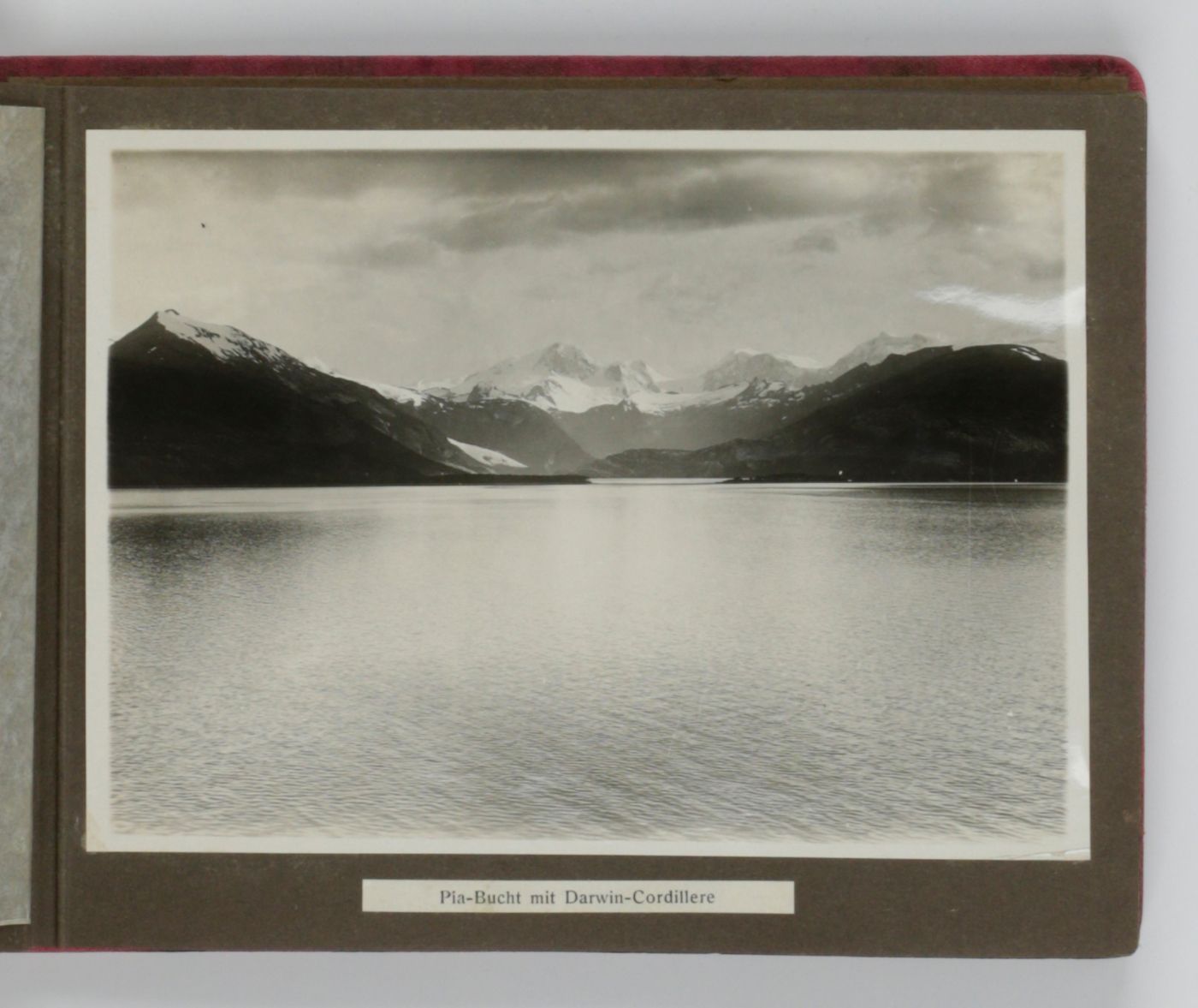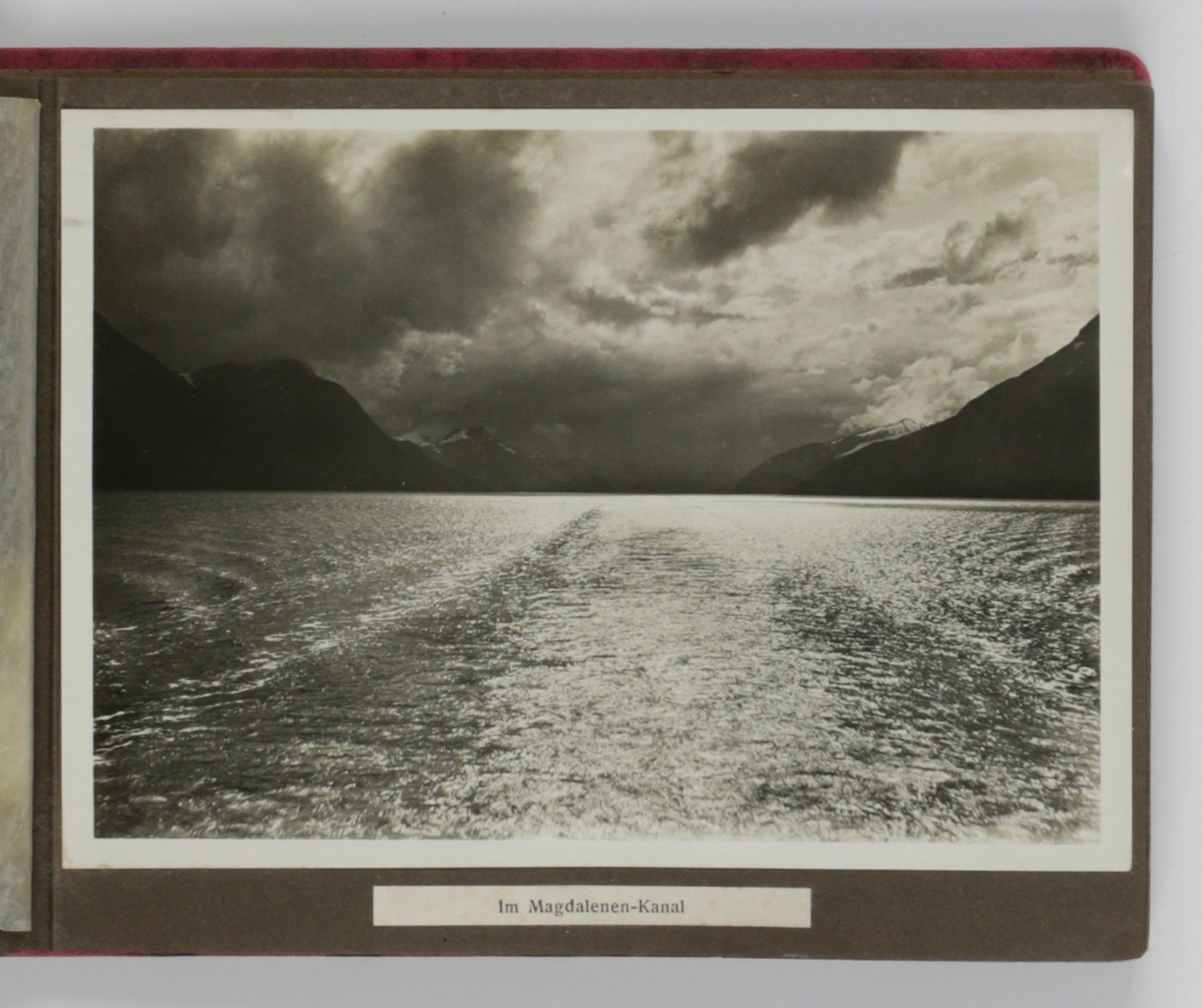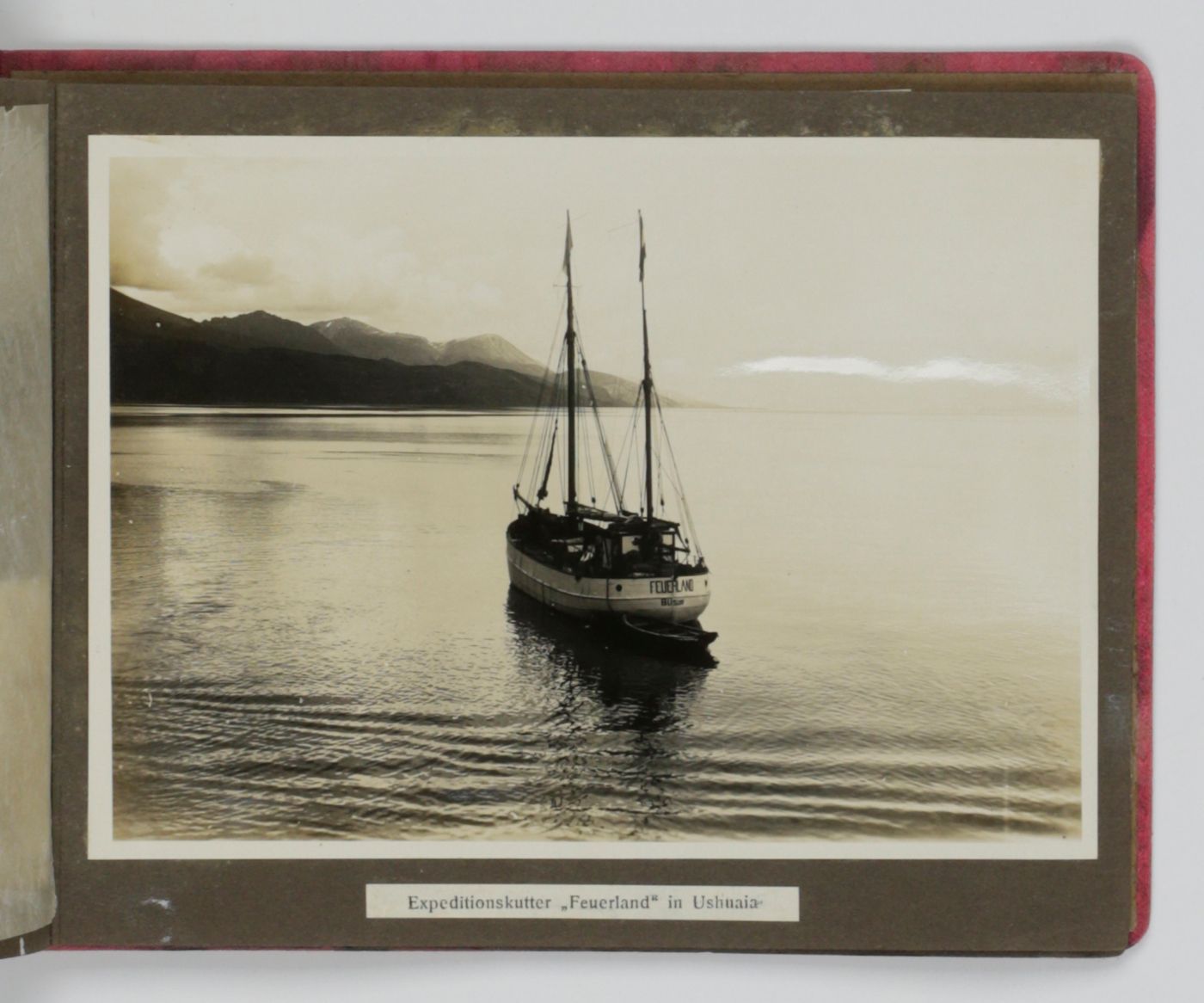 A highly interesting account, with many unique, original photos, of a cruise in southernmost South America, in particular Tierra del Fuego, by a party of German tourists. Patagonia and Tierra del Fuego have become a very popular destinations for cruises today, but this is a very early example of a cruise through this region, showing the area as it was almost one hundred years ago, and in many ways much changed since then, but, then again, with many other places hardly altered, as can be seen by comparing the photos of, e.g., Harberton, or Ushuaia, with recent photos on the internet. Views include Magallanes (Punta Arenas), "Haberton" (Harberton, on the Beagle Canal), Ushuaia, Mount Darwin, Bahia Garibaldi and the Garibaldi glacier, the steamer Antonio Delfino, the expedition ship Feuerland, etc. The Antonio Delfino "was a Hamburg South America Line steamship built 1921 at Hamburg by Vulcan Werke. The ship was built to operate on the Hamburg - South America service. In 1932 the ship was chartered to the Norddeutscher Lloyd and renamed Sierra Nevada. In 1934 she was returned to the Hamburg South American Line and the name was changed back to Antonio Delfino. In 1940 she was requisitioned by the Kriegsmarine and used as a barracks ship at Kiel, and from 1943 at Gdynia [Gotenhafen]. In 1944 she became a command ship for the Admiral of Submarines at Gotenhafen. In 1945 she was used to evacuate refugees and wounded military personnel from Gdynia, carrying a total of 20,522 people in five voyages. In May 1945 she was seized by British forces in Copenhagen. She was taken over by the Ministry of War Transport and managed by the Anchor Line. The ship was refitted as a troopship by John Brown & Co, Clydebank. and renamed Empire Halladale. On August 31, 1946, she inaugurated a troopship service between Tilbury and Cuxhaven, during which period she also transported families of UK military personnel who were to live in Germany, later serving in the Middle East and Far East. Laid up in October 1955 at Glasgow. Scrapped in February 1956 at Dalmuir, West Dunbartonshire" (Heritage Ships website). Very rare. We found no record of other copies of the printed edition. All photos in very good condition, as are the original covers.