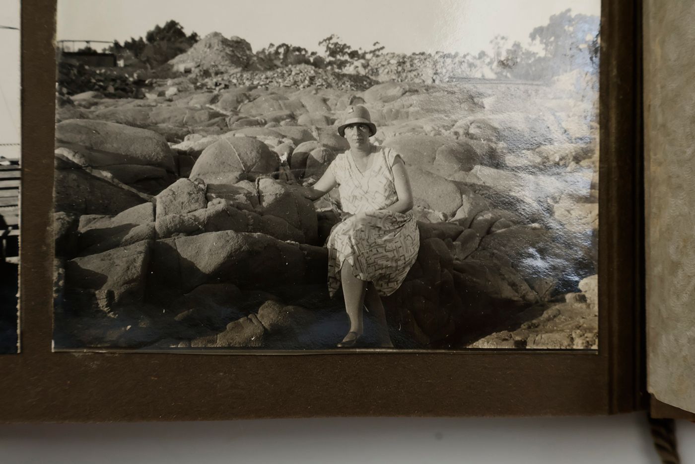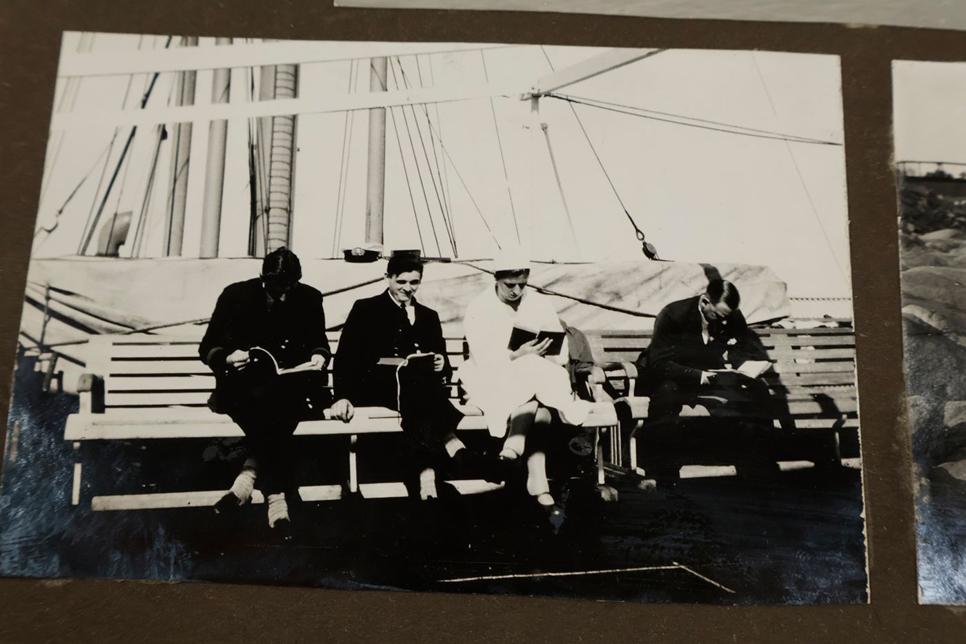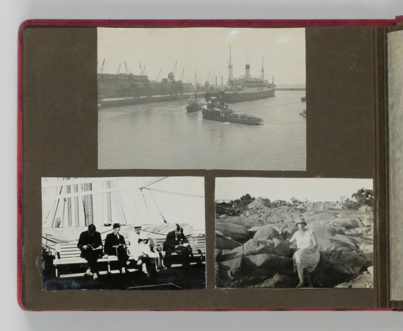 Hamburg, Hamburg-South America Line, and private German tourists, 1929. Oblong folio (14.9 x 21.5 cm). Album with printed title page; and 18 cardboard leaves, with 18 professional photos, and 52 excellent amateur photos, all mounted. Original Art Deco full cloth.