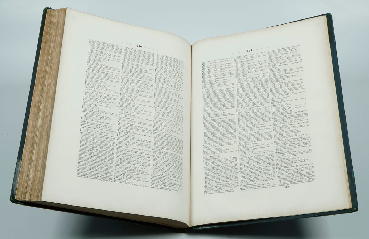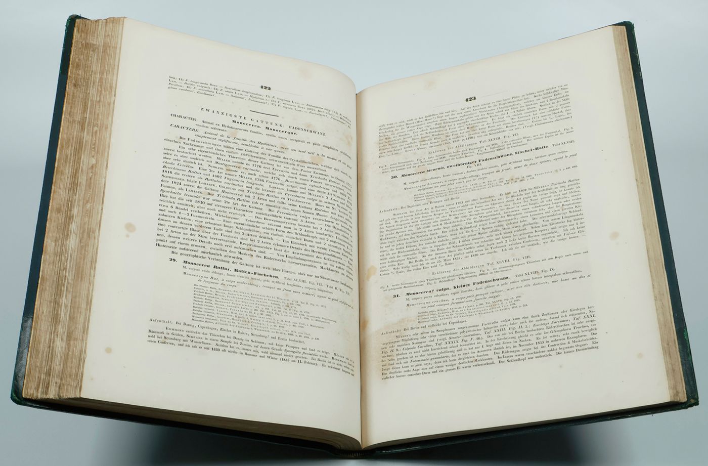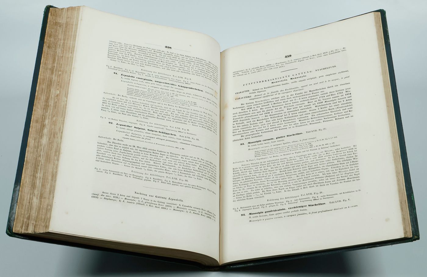 Leipzig, Leopold Voss, 1838. Two volumes in two. Folio (46.3 x 33.3 cm).Two title pages; , xviii, [iv], 548 pp; 64 engraved plates in fine, original hand-colouring. Uniform contemporary half morocco over pebbled boards. Spines with five raised bands; compartments with gilt floral vignettes, titles, and logos. Marbled endpapers.
